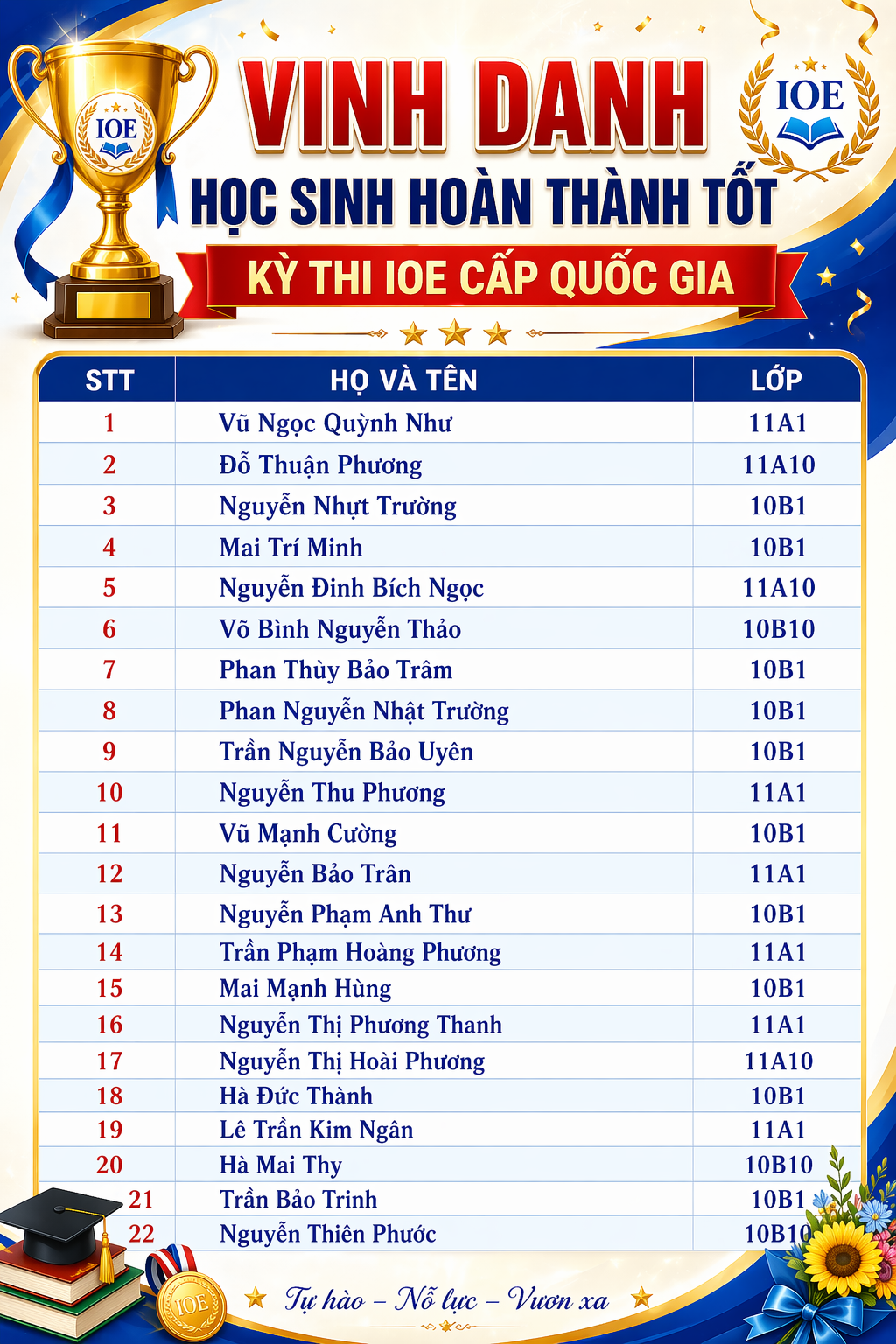 Thành tích đạt được hôm nay chính là nền tảng vững chắc để các em tiếp tục phát huy năng lực, nuôi dưỡng niềm đam mê học ngoại ngữ và tự tin chinh phục những thử thách lớn hơn trong tương lai.